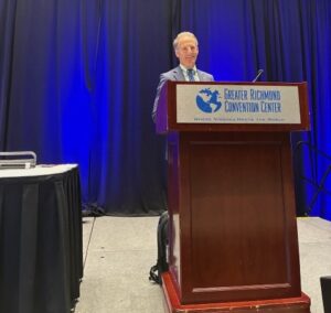 Shown here after another successful presentation to the judges, lawyers, TPAs and staff at the Richmond Convention Center, Doug Landau has noted that comp insurance companies are trying to save money by delaying and denying necessary medical treatment for injured workers. Lawyer Landau was again at the podium during the Virginia Workers Compensation Commission’s annual Education Program.